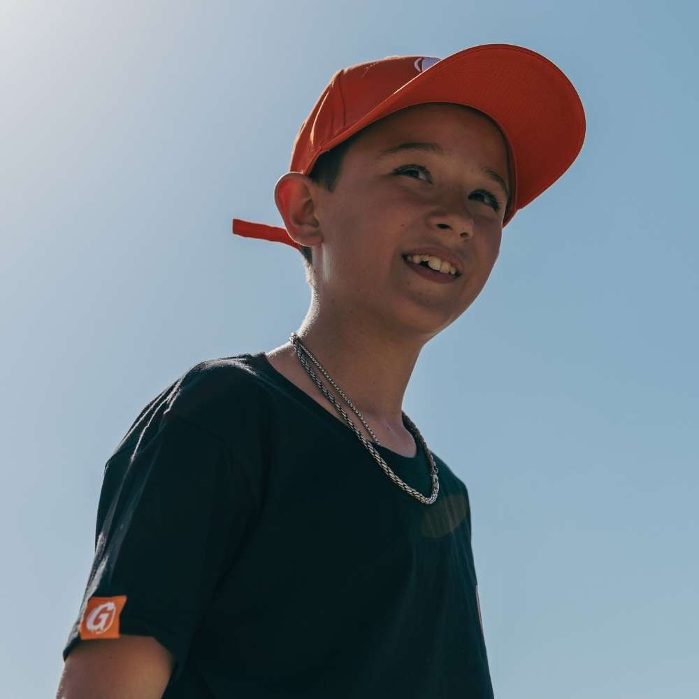 Turn up the heat with the Grip Rip Icon Cap in Blaze Orange—a bold statement for players who bring fire to the game. Made from 100% premium cotton, this multi-panel baseball sport cap is designed for ultimate comfort and breathability. The adjustable fabric strap with a metal clip ensures a snug fit for all head sizes (56-62cm). Featuring our signature embroidered ‘G’ logo (6cm) on the front and Grip Rip branding (7cm) on the back, this cap is built for both style and performance. Whether you’re tearing up the hand tennis court or kicking back post-match, this cap keeps you looking sharp.